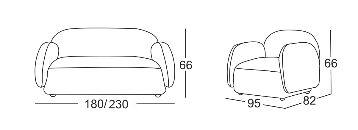 single: W95*D82*H66CM; 2-seat: L180*D82*H66; 3seat: L230*D82*H66CM