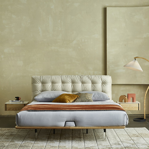 Material: Instead of the shining steel and other metal decoration, it goes back to nature, under the mattress, you can see a wooden slat (ash wood frame + rubber solid wood) that makes of mortise and tenon joint. the stronger structure and natural wood grain bring people more peace and home relaxation.
